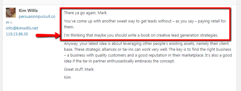 And after he did so, I immediately replied to his comment, and after I did, it really got my creative marketing juices going, in the right direct.